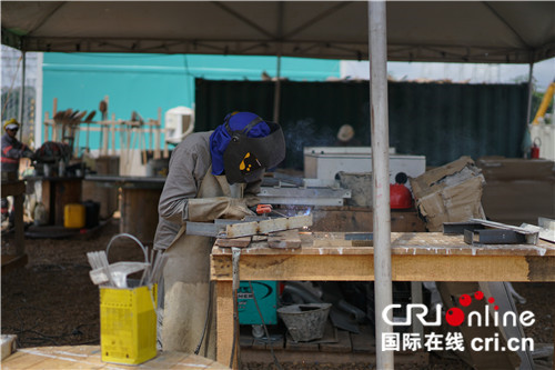 巴西工人在现场施工。