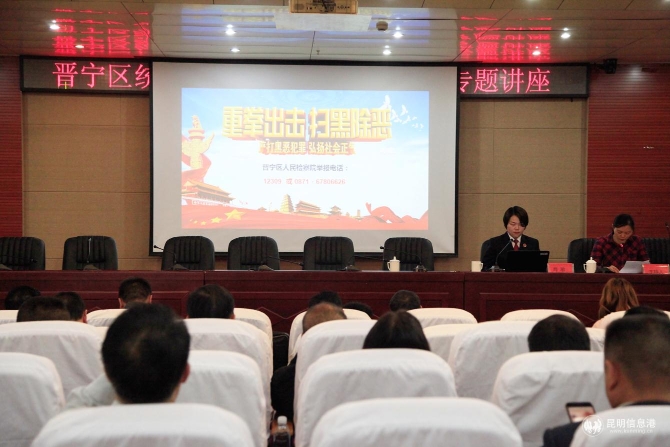 昆明信息港讯 通讯员黄丽萍 李有龙 为提高统战人士对扫黑除恶专项斗争的认识,动员统战人士积极参与到扫黑除恶专项斗争中。近日,晋宁区委统战部举办全区统一战线扫黑除恶专项斗争专题讲座,邀请区人民检察院检察官肖瑜作《开展扫黑除恶专项斗争 创造安全稳定社会环境》专题讲座。
