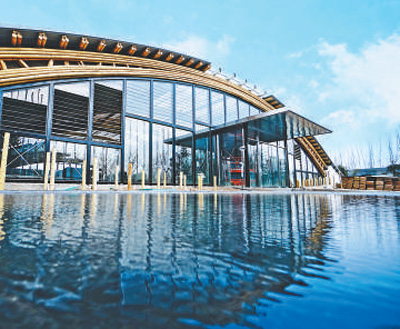 隐藏于竹拱撑起的绿色花园之中,绿地沿拱脚向屋顶蔓延,建筑、竹构、竹景观浑然一体。这里是国际竹藤组织园,本届世园会41个国际展园之一,也被誉为“竹之眼”。
