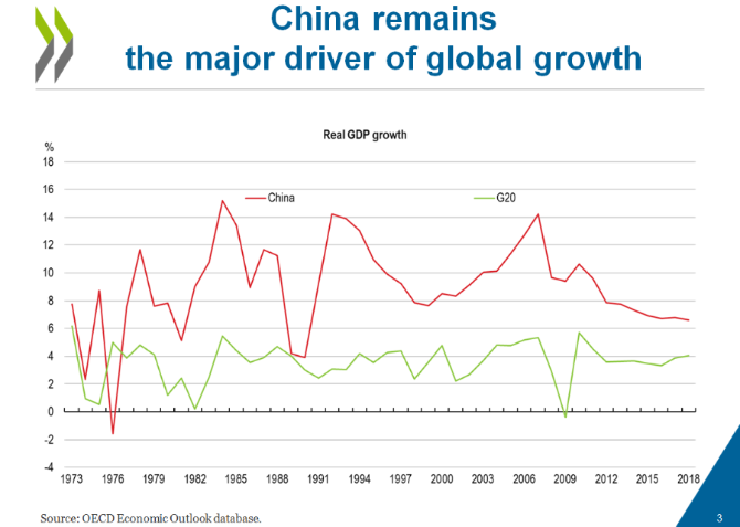 中国仍是世界经济增长的主要动力。图片来源:经合组织《中国经济调查》报告