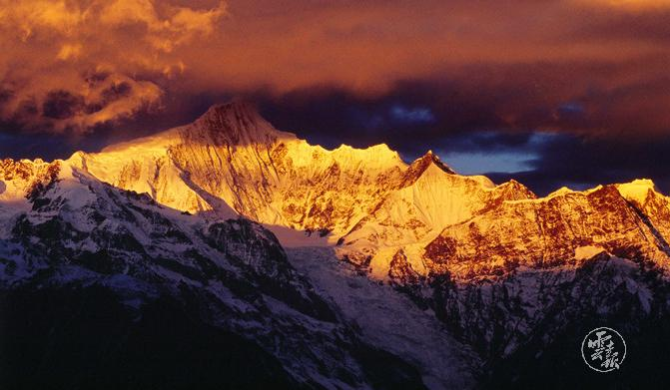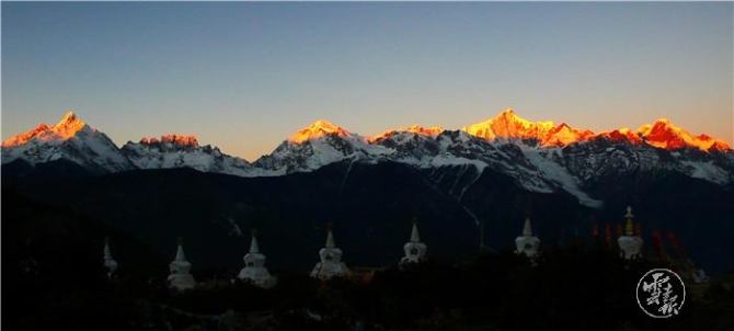 在这里,有一座能直指蓝天的神山——梅里雪山。这里山高谷深,山川相间,一山分四季,十里不同天,浓缩了整个北半球气候生态景观。其中,最著名的景观便是日照金山。