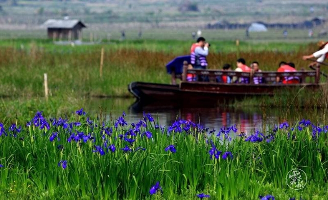在这里,北海湿地有罕见的漂浮草甸,大片漂浮于水面的陆地,犹如五彩缤纷的巨型花毯。