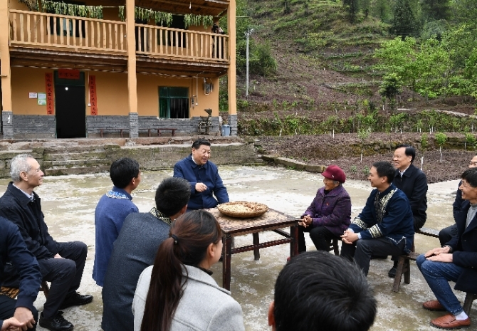 湖南湘西十八洞村困难群众施成富家门前的空地,成了总书记召开“现场座谈会”的场地。他同村民围坐在一起商量脱贫致富奔小康之策。