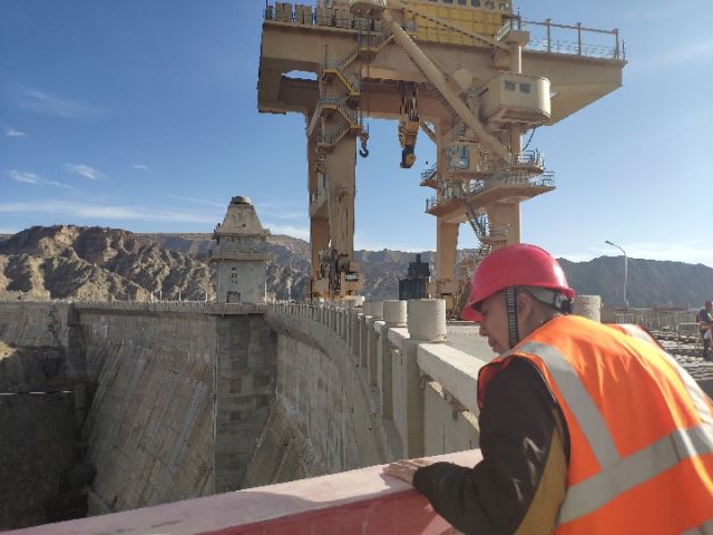 一名科幻作家在龙羊峡水电站的大坝上参观。新华社 王秀琼/摄