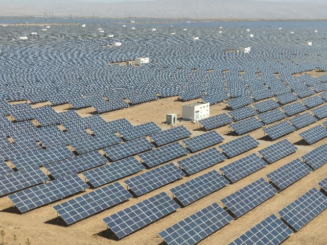 在国家电投黄河公司的共和光伏产业园区——全球装机容量最大的光伏园区,科幻作家昼温站在观光塔上,俯瞰如海洋般一望无际的太阳能电池板阵列,感觉它们“像深蓝色的多边形向日葵,沉默地汲取恒星能量”。