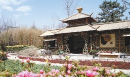 右侧通往鹤品流芳、水照花台、沁芳春雪、铁树英姿等景点。作为展园的主要文化景观,鹤品流芳是一组林则徐放鹤的雕塑。林则徐爱鹤、养鹤,景点生动再现了这段故事。
