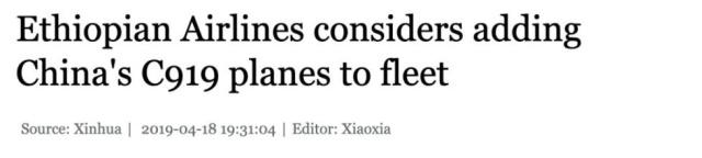 埃塞俄比亚航空:考虑向中国采购C919客机
