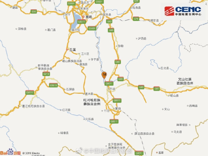 昆明信息港讯 记者周然 据中国地震台网正式消息,4月23日2时22分,在云南红河州弥勒市(北纬23.90度,东经103.20度)发生了2.9级地震,震源深度达14千米。