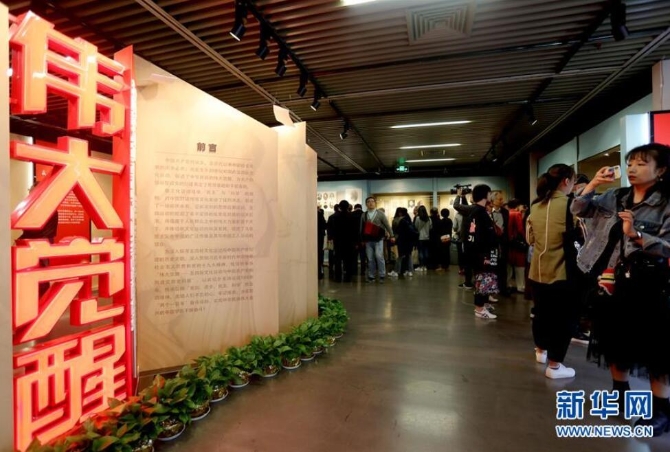 4月18日,参观者在观看展览。当日,“伟大觉醒:五四新文化运动与中国共产党的创建文物史料展”在上海中共一大会址纪念馆开幕。展览分为“千年未有之大变局”“反帝爱国之大风雷”“开天辟地之大事变”三部分,120多件珍贵馆藏文物亮相。 新华社记者 刘颖 摄