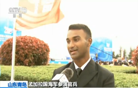 孟加拉国海军参演官兵 Akib Anafat:首先,感谢被邀请来中国,我们非常高兴、非常享受,祝中国海军生日快乐。