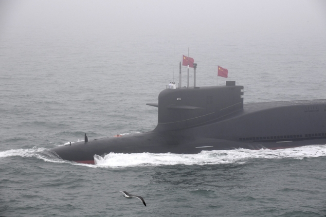 这是4月23日拍摄的中国某新型核潜艇接受检阅。新华社记者李紫恒摄