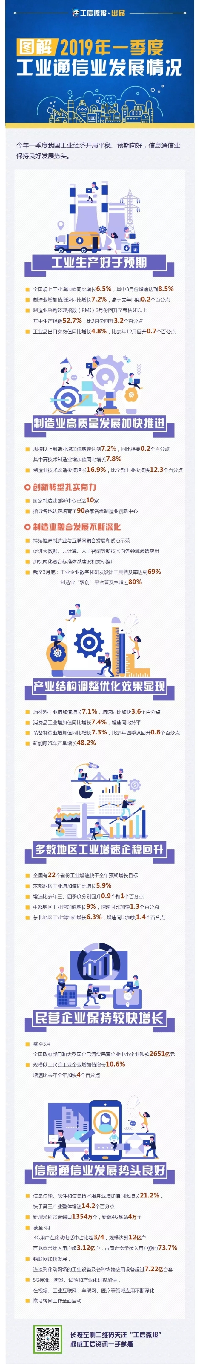 工业和信息化部今日公布2019年一季度工业通信业发展情况。具体情况如何?小编带您一图看懂↓↓