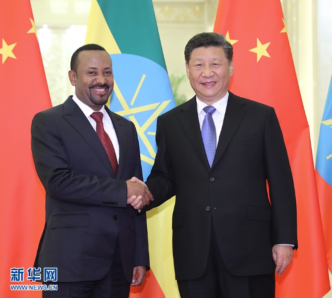 4月24日,国家主席习近平在北京人民大会堂会见埃塞俄比亚总理阿比。 新华社记者 丁林 摄