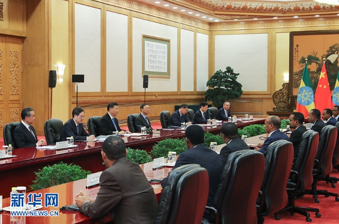 习近平强调,埃塞俄比亚是中国在非洲的重要合作伙伴。中埃都是发展中大国,都依靠自身努力走出一条符合本国国情的发展道路。中方支持埃方维护稳定、发展经济、改善民生的努力,愿同埃方保持高层交往势头,在涉及彼此核心利益和重大关切问题上继续相互理解和支持;推进双边互利合作,帮助埃方提升工业化水平和出口创汇能力;密切在气候变化、非洲之角形势等国际和地区事务中沟通协调。中方愿以共建“一带一路”和落实中非合作论坛北京峰会成果为契机,深化两国全面战略合作伙伴关系,更好造福两国人民。