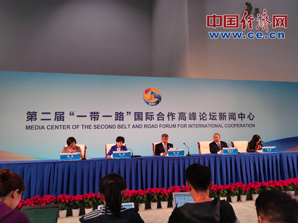 图为第二届“一带一路”国际合作高峰论坛企业家大会新闻发布会现场。经济日报-中国经济网记者 张懿摄