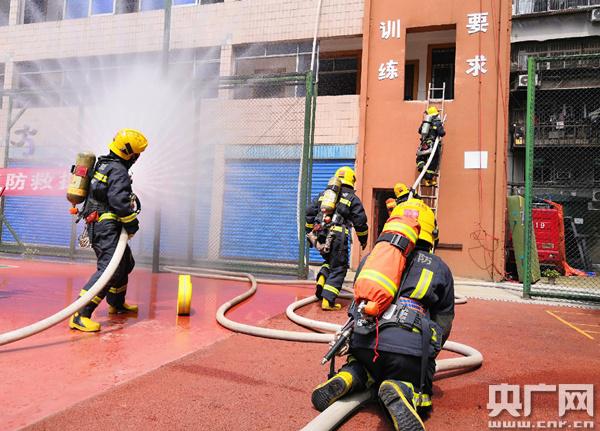 江汉中队消防员进行日常训练。(央广网记者 陈锐海 摄)