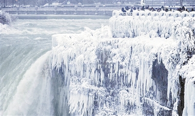加拿大安大略省,低温来袭时尼亚加拉瀑布结冰的壮观景象。