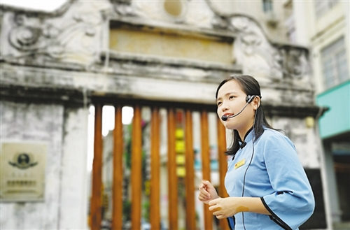 北海景区公司的工作人员王蓉向游客介绍北海老街。