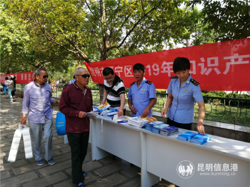 昆明信息港讯 通讯员柏玉福 4月25日上午,晋宁区以“严格知识产权保护,营造一流营商环境”为主题,通过现场咨询、发放宣传材料、送宣传材料进商场等多种形式,在昆阳中和路开展2019年知识产权宣传周活动。