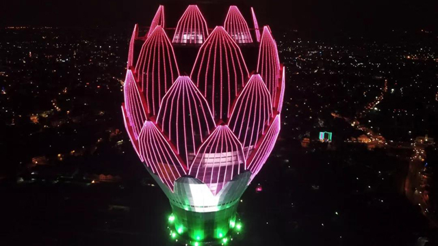 这是4月12日在斯里兰卡首都科伦坡用无人机拍摄的点亮灯光的莲花塔。科伦坡莲花电视塔项目是中斯在“一带一路”建设中的重要合作项目。项目计划在今年7月完工。