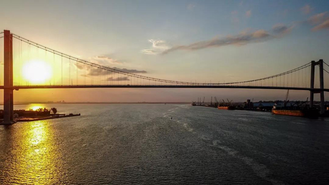 这是4月9日在莫桑比克拍摄的夕阳下的马普托大桥。2018年11月,由中国路桥工程有限责任公司承建的马普托大桥及连接线项目经多年建设正式通车,莫桑比克人多年夙愿终于实现。
