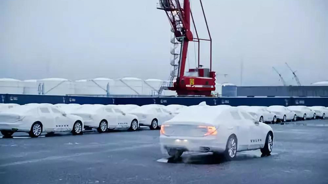 比利时根特港货运场站中欧班列沃尔沃汽车专列的专用停车场。