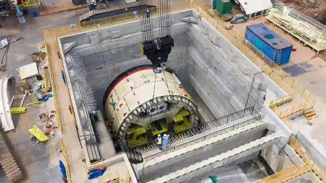 这是印度尼西亚雅加达的雅万高铁一号隧道项目现场拍摄的正在组装的盾构机。