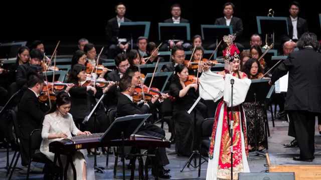 2018年3月17日,在马来西亚吉隆坡,中国国家交响乐团与中国传统乐器古筝以及女高音在“一带一路”马中友好钢琴交响音乐会上表演交响幻想曲《霸王别姬》。