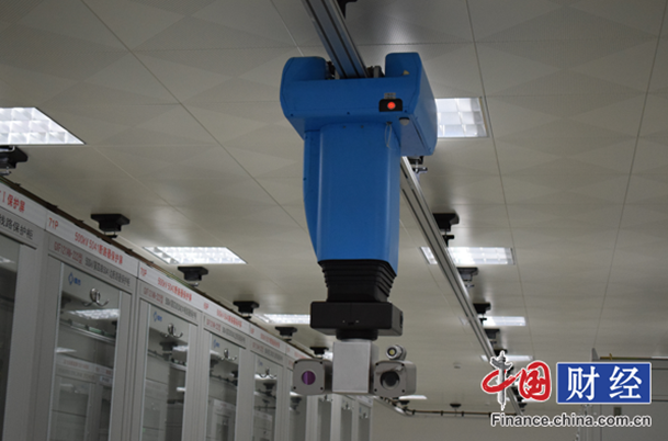 继保室挂轨机器人“蜘蛛侠”,它的“脖子”可以上下伸缩(中国网财经李春晖/摄)