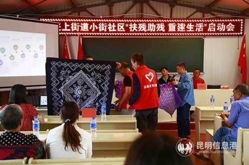 昆明信息港讯 4月26日下午,由官渡区民政局、官渡区残疾人联合会、关上街道残联共同承办,小街社区协办的“扶残助残 重建生活” 专项救助精神残疾人员工作启动仪式,在小街社区二楼会议室召开,关上街道辖区内共36名精神残疾人员及家属参加。