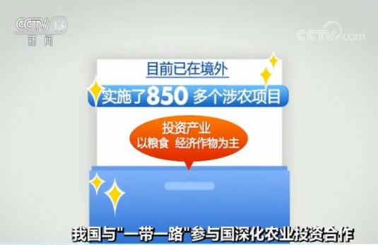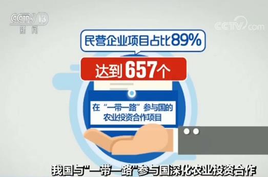 农业农村部有关负责人介绍,自“一带一路”倡议提出以来,我国农业对外投资合作实现了跨越式增长,目前已在境外实施了850多个涉农项目,投资产业以粮食、经济作物为主,包括水稻、玉米、大豆、天然橡胶、棕榈油、棉花、畜产品等。在“一带一路”参与国的农业投资合作项目达到657个,其中民营企业项目占比89%;投资存量达到94.4亿美元,较5年前增长70%。