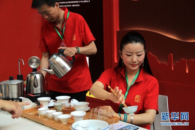 茶企现场冲泡展示茶产品。新华网 念新洪/摄