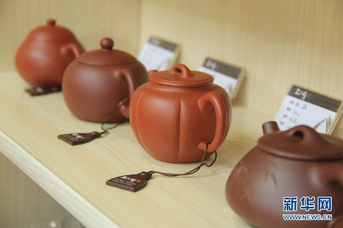 茶博会上展销的各类茶具。新华网 念新洪/摄