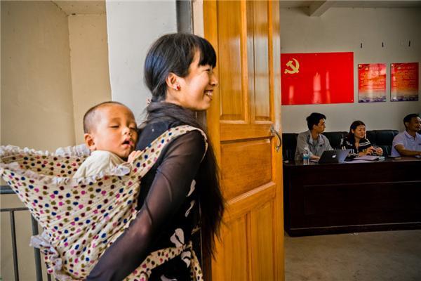 “多多农园”团队向丛岗村村委会、商家、农户公布未来三年的计划,一位年轻妈妈站在门外旁听。