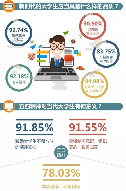 “五四”前夕,新华网记者走进100所大学,对近2000名不同专业、年龄、生活背景的大学生进行采访和问卷调查,通过调查数据和采访交流绘制出新时代大学生的精神图谱: