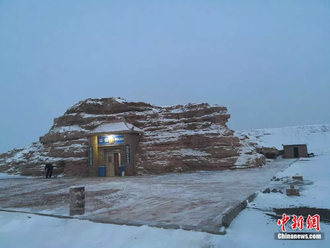 图为2019年春节期间雅丹派出所民警正在扫雪李生寿摄