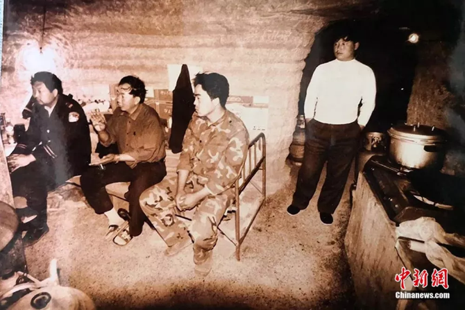 图为雅丹窑洞派出所建立之初李生寿与其同事一起在派出所内资料图