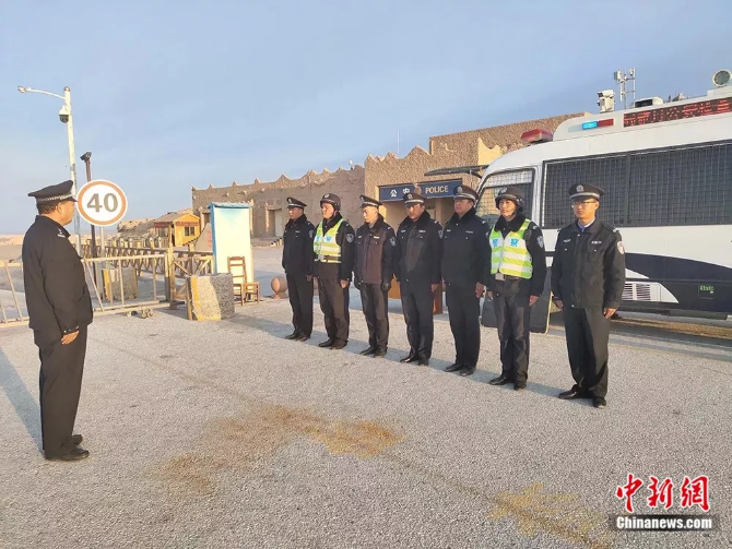 今年全国两会环疆公安检查站一级查控期间,李生寿集合检查站民、辅警总结检查工作资料图