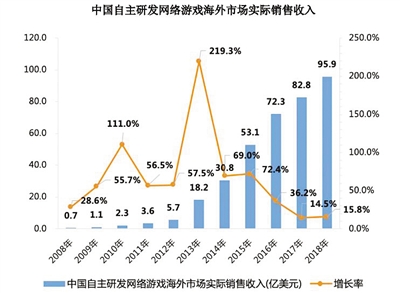 中国自主研发网络游戏海外市场实际销售收入。国内公司自主研发的约350款手机游戏出海,并获优异成绩。受访者供图