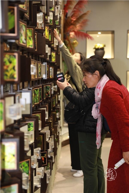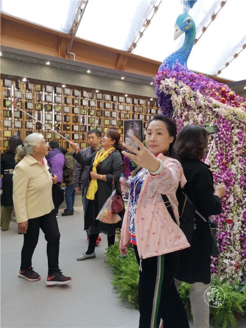 “哇,看大孔雀!”在世博园中国馆内二层,云南馆内展示的由大花蕙兰和干花制作的约3米高的大孔雀是游客们镜头追逐的焦点。馆内集中展示了云南园艺产业成就、特色产品、新品种、新技术以及新成果。最有价值的镇馆之宝是一面由348粒种子组成,以“种子密语”为设计主题的种子墙,其中40种为云南特有的物种,包括对世界观赏园艺影响深远的云南的八大名花、还有代表云南园艺产业的药用植物、香料植物及茶饮植物的种子。不少对这些种子感兴趣的游客,纷纷掏出手机扫描背面的二维码,探寻一粒粒种子的身世奥秘。