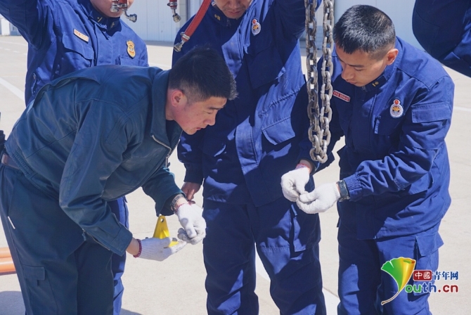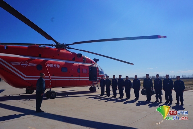 直升机起飞前,机长向包括机械师在内的机组人员下达飞行指示。 中国青年网记者 曹迪摄