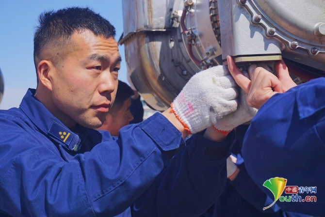 由于常年在户外工作,机械师的脸上已蒙上一层沧桑。 中国青年网记者 曹迪摄