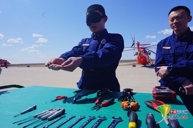 技术娴熟的机械师可以蒙眼识别维护与维修工具。 中国青年网记者 曹迪摄
