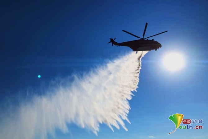 在飞机安全的前提下,直升机才能进行洒水作业等灭火、救援工作。 中国青年网记者 曹迪摄