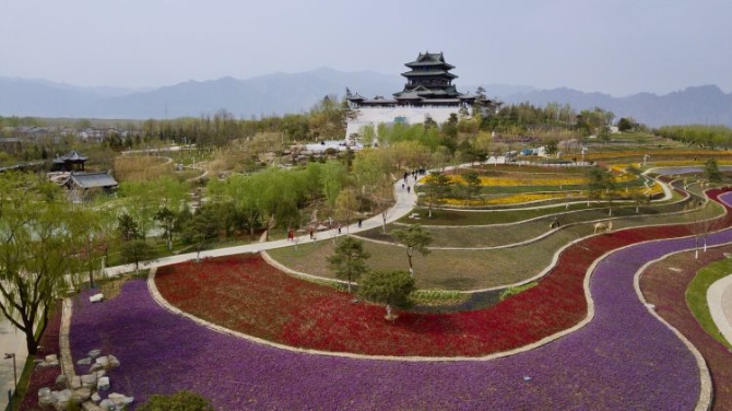 4月19日无人机拍摄的北京世园会园区永宁阁。新华社记者 侯东涛 摄