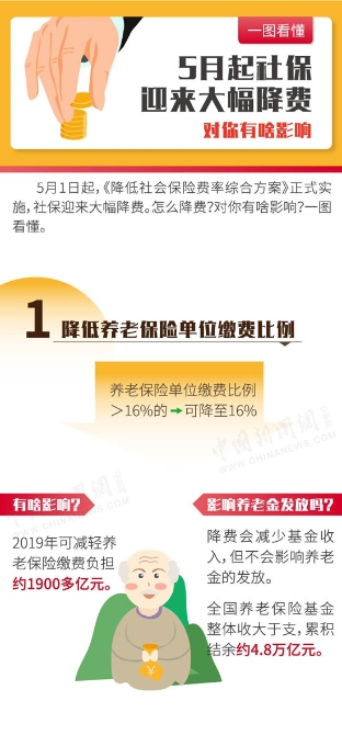 5月1日起,社保降费新政正式落地。此次社保降费能降多少?对企业和职工有啥影响?是否影响养老金发放?今年社保还有哪些大变化?一起来看。
