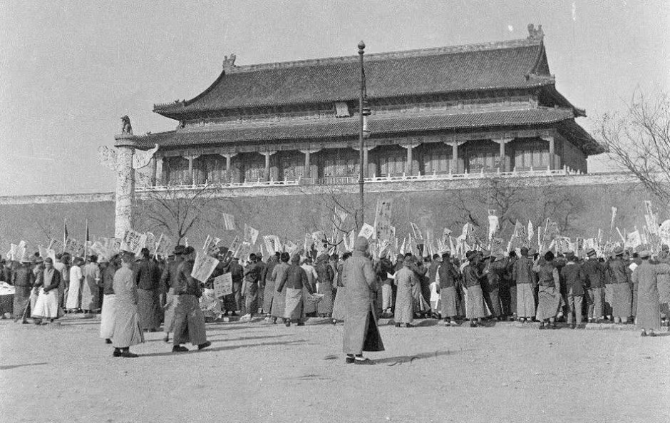 △这是4月27日青年观众参观北京新文化运动纪念馆。该纪念馆馆址即北大红楼。当年,北大学生就是从北大红楼出发前往天安门。(央视记者拍摄)