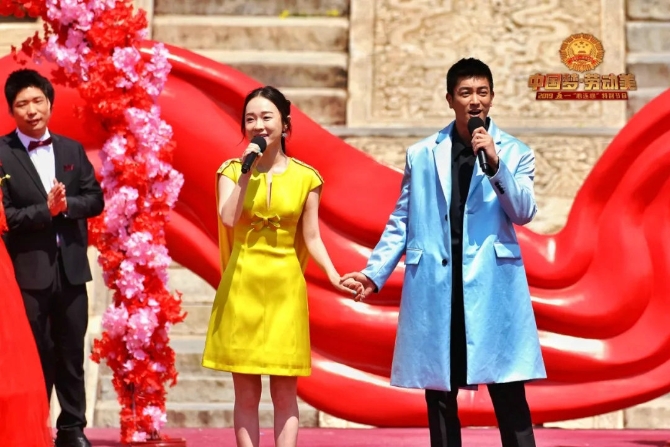 演出现场,11对即将走进婚姻殿堂、活跃在生产第一线的青年职工迎来了一位特殊的证婚人——葛优。还有多组全国劳模家庭与现场嘉宾进行互动,与观众分享了美丽的劳动者家庭故事。