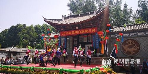 昆明信息港讯 记者袁瑶溪 今天是小长假第一天,云南民族村白族村寨聚满了省内外游客,与白族村民一起载歌载舞“绕三灵”,祈福祭祀。