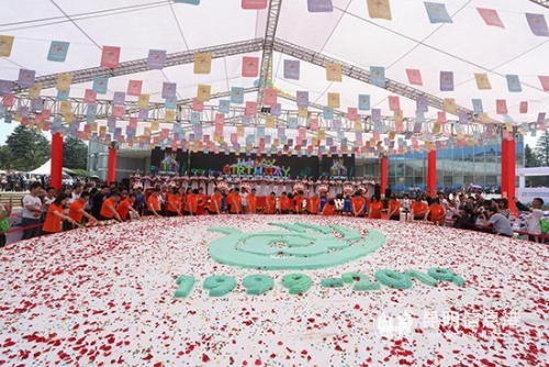 9.9米的超大蛋糕庆祝昆明世博园20岁生日。供图